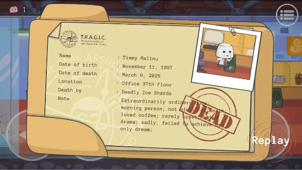 游戏结束后,你会得到一份详尽的“死亡报告”,上面记载着你最后的时刻。