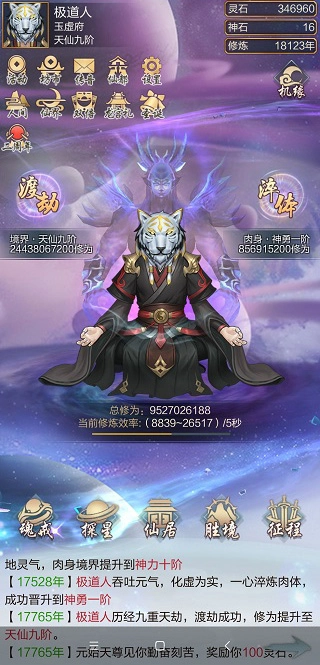 渡劫是提升修为境界的途径,需要消耗一定量的修为,且境界越高,升级所需的修为就越多。渡劫存在一定的失败概率,不过使用对应境界的丹药能够将成功率提升至100%。境界在游戏里起着至关重要的作用,它不仅能加快修炼速度,游戏中众多玩法都要求达到特定境界方可解锁,而且境界越高,还能加入更高级别的门派等。