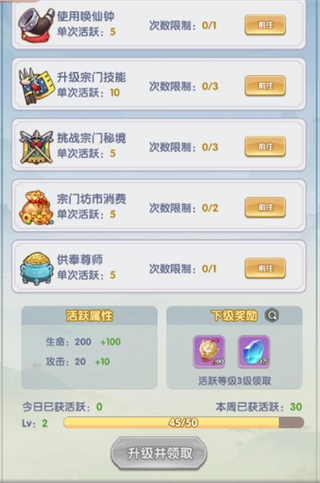 每天参与宗门的日常活跃任务,能积累活跃度并领取相应奖励,其中包含不少宗门贡献以及灵石这类实用资源。