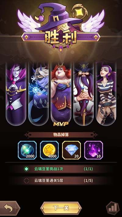 只有品格正直的伙伴才能一同出战,成功击败当前层的敌人后,不仅能获取丰厚奖励,还能顺利晋级到下一层;云端豆茎上的敌人实力强悍,玩家需要灵活调整阵容搭配和战斗策略,才能将其战胜并完成通关。