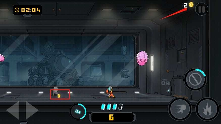 右上角显示的是玩家在当前关卡内收集到的金币数量。收集金币不仅能提升游戏分数,还能在通关后用于强化角色属性。不过需要留意的是,掉落的金币存在时间限制,建议玩家尽快将其拾取。