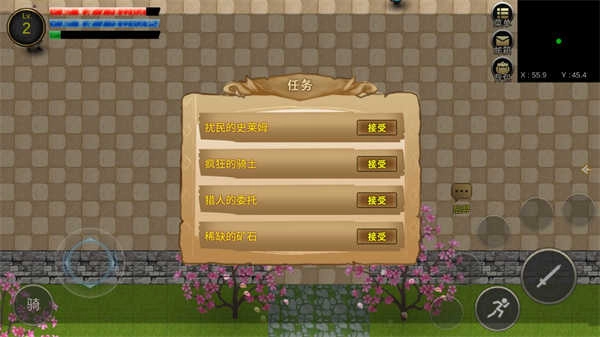 在探索的过程里,你会碰到阻挡你前进的史莱姆,借助右侧的攻击键就能迅速把它们解决掉。