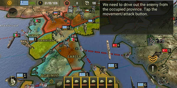 在第二阶段选择希腊时,需要完成开局给出的三个任务中的其中一项。考虑到针对意大利的任务难度较高,我决定优先处理土耳其和保加利亚这两个目标。初始阶段希腊会拥有四支海军力量,建议额外补充一艘潜艇,这样基本就能压制住土耳其的舰队。接下来要迅速对伊斯坦布尔发动进攻,同时从两侧实施登陆作战形成夹击态势。值得注意的是,土耳其首都虽然驻扎着12个单位的兵力,但只要没有受到直接攻击,这些部队就会一直处于静止状态。因此可以先清除外围的敌方兵力,再逐步包围首都,不必担心这12个单位会主动出击。