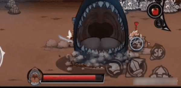 有一款造型华丽的火枪武器,其设计原型是强力的魔鲨头目,整体外观呈现出一头威风凛凛的鲨鱼形态。它最具特色的技能与“鲨鱼”相关:武器会朝前方投掷一块诱饵肉块,随后地面会跃起一条巨鲨将肉块吞入腹中,同时对周边区域的敌人发起冲击。这个技能在对付强大头目时效果显著,但面对数量众多且行动敏捷的小型敌人时,不仅难以发挥作用,反而显得效率低下。