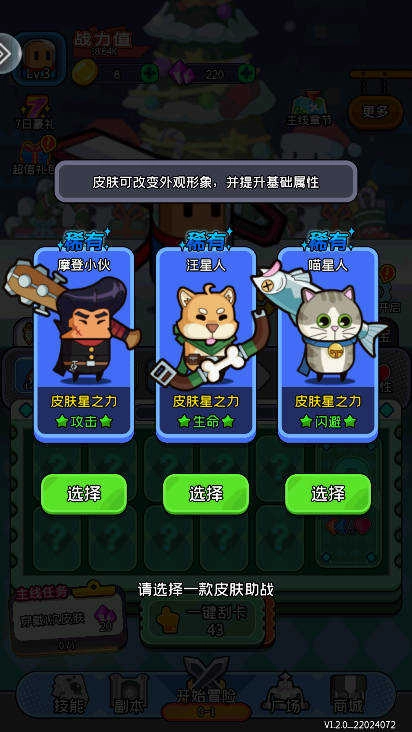 游戏里的皮肤系统堪称一大亮点,里面有各式各样风格别具一格的卡通形象,还有专属武器,能充分满足玩家的收集欲。而且不同皮肤还会对派遣系统和大乱斗玩法产生影响。派遣系统靠日常操作来积攒资源,等级越高,能拿到的奖励就越丰厚。大乱斗模式则很考验皮肤的养成策略,是三路对战、九位角色的玩法,需要运用“田忌赛马”那样的排兵布阵技巧,就算面对强敌也有逆袭的机会!