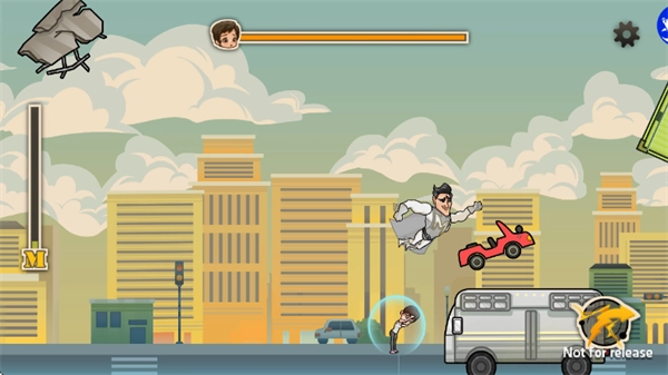 成都超人的职责是守护屏幕里的小朋友,避免他遭受伤害,为此需要持续撞击周围物品来进行保护。