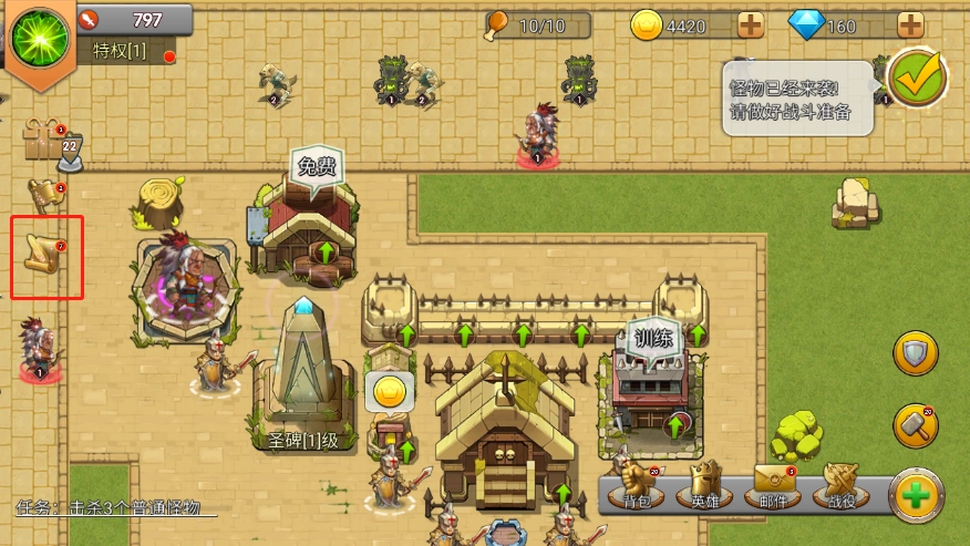 另外,酒馆里会驻扎着强大的英雄,所以玩家可以建造一座酒馆——同样是打开建筑列表,选择酒馆即可;建好之后,点击酒馆就能招募英雄,获取的碎片还能用来给英雄升级。