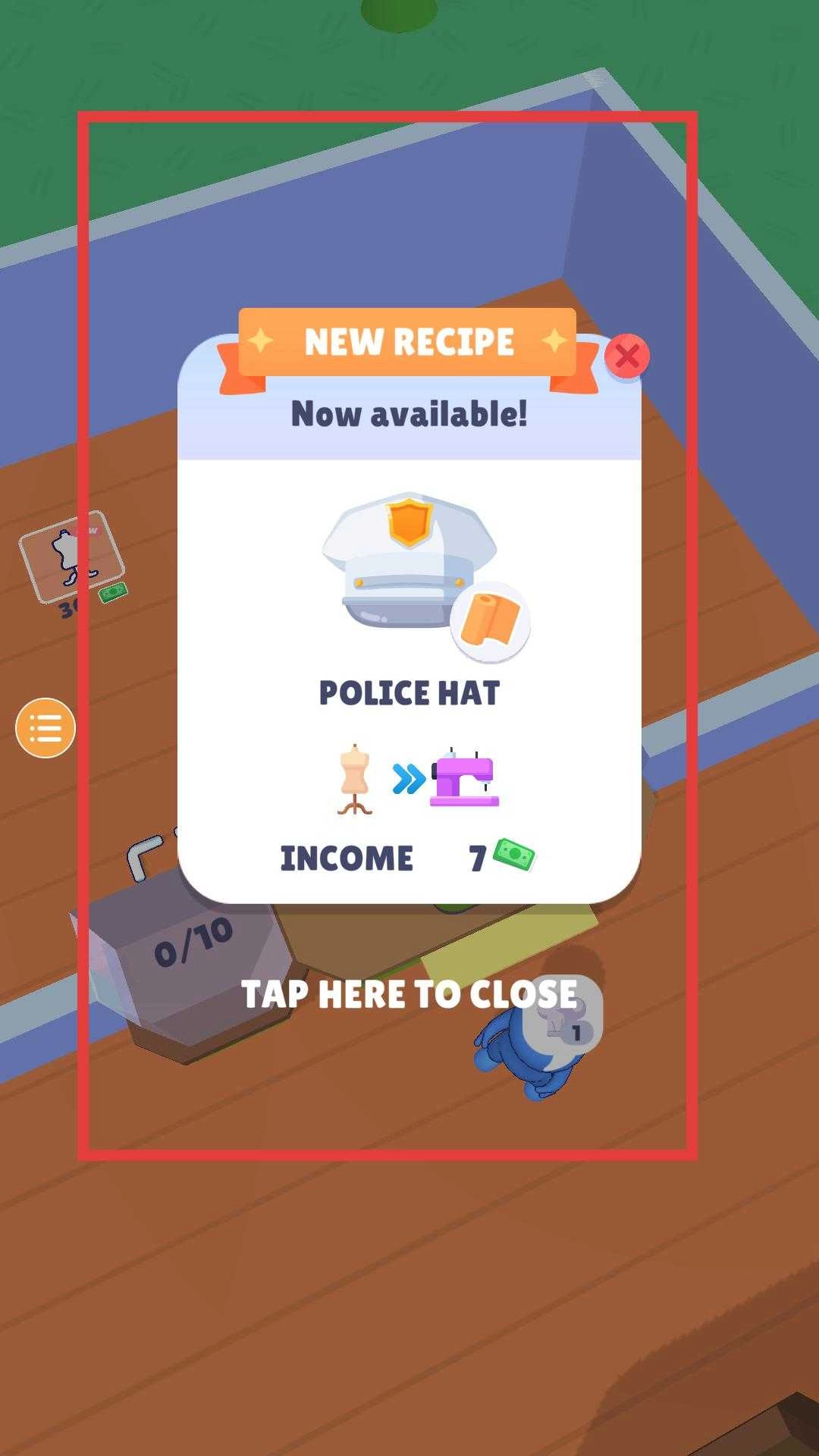 积累到一定数量的钱币后,就能解锁新的物品配方,像警察帽这类。借助缝纫机制作出这些新物品,把它们售卖出去可以获得更高的收入,从而帮助用户更快地赚钱。