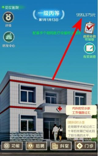 4、医院有评级,像从一级丙等开始,要通过良好的经营,提升医院的各方面,争取让评级提升的同时营业额也会更高,同时合理利用资源。