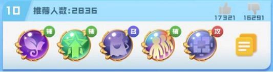 【流派解析】:纯召流,从名称就能明白,是完全以【召唤球球】为核心构建的阵容,其主要作用是为敌方供给SP,通常情况下敌方很可能是【连击流】。纯召流的阵容配置一般为【召唤球球搭配4个辅助球】,常见的阵容示例如下: