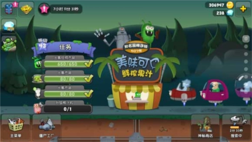 需要注意的是,沼泽通常会困住不止一只僵尸,所以当沼泽里有一只以上僵尸时,尽量确保把它们全部捕获,否则这些僵尸分头逃窜很容易跑掉。尽量躲在僵尸逃跑方向有柱子的位置,捕获僵尸后就可以根据僵尸商品的配方开始制作僵尸食品了。一开始玩家们基本都是制作普通的僵尸果汁,随着等级提升和金币积累,慢慢就能制作更多种类的僵尸食品。