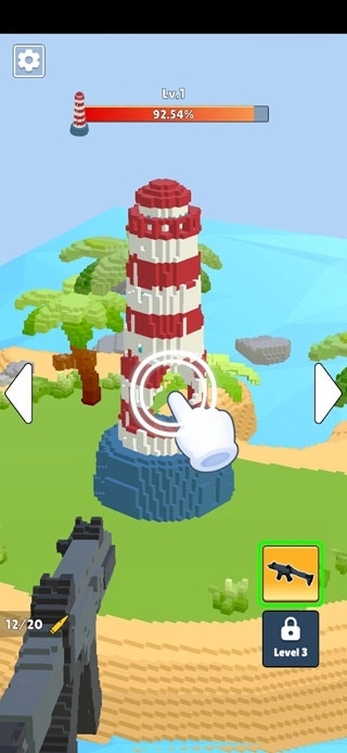 首先挑选火箭筒作为拆除的工具,接着通过滑动屏幕来调整火箭的发射角度与力度。