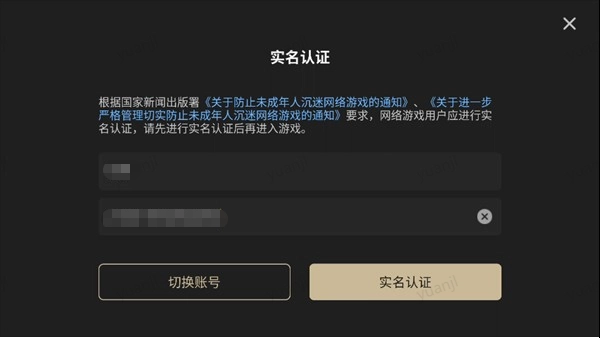 启动云二重螺旋游戏后,我们首先要完成实名认证这一步骤。
