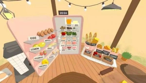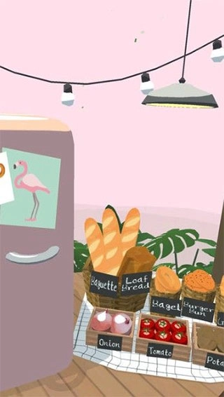 转动手机时,游戏里的视角会同步转动,很容易就能找到冰箱、食材和菜板这类物品。之所以称它为“没有烦恼的厨房”,是因为冰箱里的食物无需自己采购,用完后会自动补充,而且食材无论存放多久都不会变质,让人特别省心。
