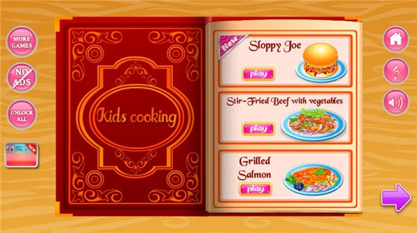 这里有菜谱,选择你要玩的菜,然后进入。