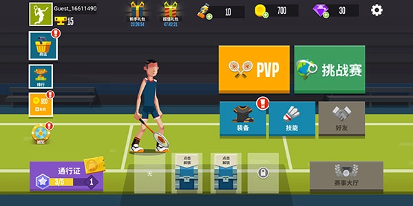 游戏采用简洁大方的UI设计,清新自然的美术风格,仿佛置身于羽毛球球场中。
