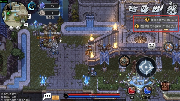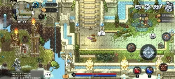 进入游戏后,左侧区域用于操控角色移动,右侧则分布着攻击、背包等功能按钮。