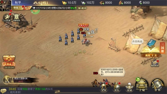 有各种挑战任务可以完成,不同的武将等你去选择培养。