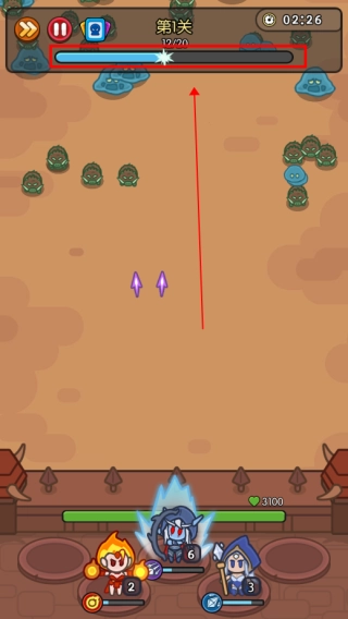 我们得通过消灭小怪来积累能量值,这样才能应对这一关卡后面出现的小怪。