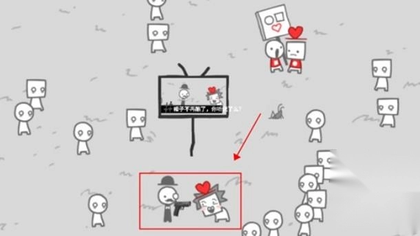故事的结尾,那对呼吁和平的情侣与引导舆论的戴帽人幸存了下来,两人并肩坐在逝者的墓前。