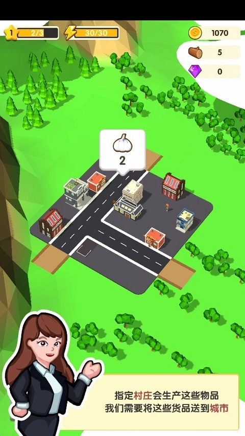 城市发展离不开一些必需品,这些物品由特定村庄负责生产,之后再运送至城市。首先要把城市与村庄的道路连接起来,点击“修路”按钮即可。