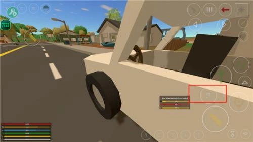 5、在探索过程中,我们也会碰到载具,点击f,进行上下车。