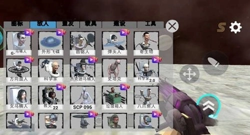 点击图中所示的箱子按钮,挑选想要添加的敌人类型,比如马桶人、圆锯人、弹头人、寄生物、外星飞碟之类的都可以。