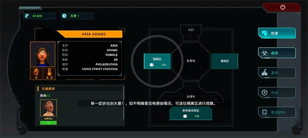 然后点击左侧的“平板电脑”,查看幸存者症状,将其送往隔离区或清除区