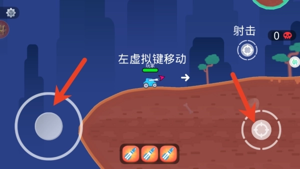3、战斗打响后,借助虚拟摇杆操控坦克行进,寻找掩体来隐蔽自身,同时留意敌方坦克的方位,锁定目标后对准其薄弱部位开炮攻击。