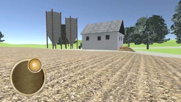 1、启动游戏并进入,通过滑动左侧的虚拟摇杆,控制角色四处移动,探索农场的各个区域环境。