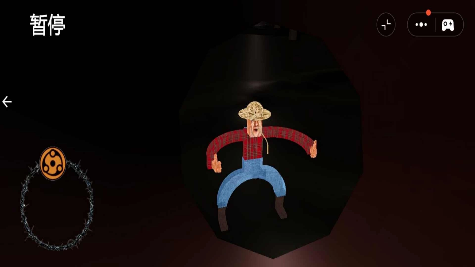2、通过左下角的轮盘来操控角色移动,滑动屏幕能够切换视角,右上角的按钮可以暂停游戏,建议先熟悉各项操作,再前往危险区域进行深入探索。