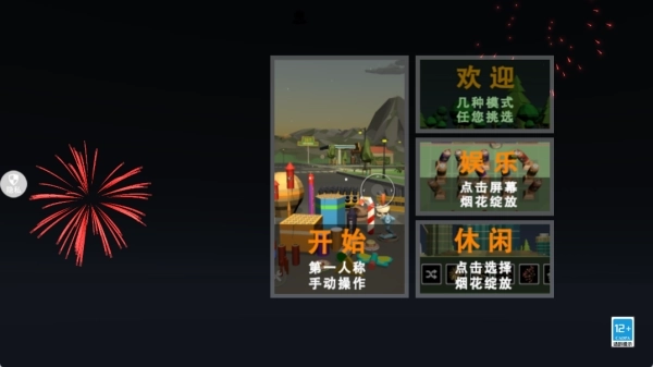 1、游戏内提供多种模式与地图供玩家挑选,玩家能够进入全新地图燃放烟花,各式各样的烟花均可放置在不同位置。