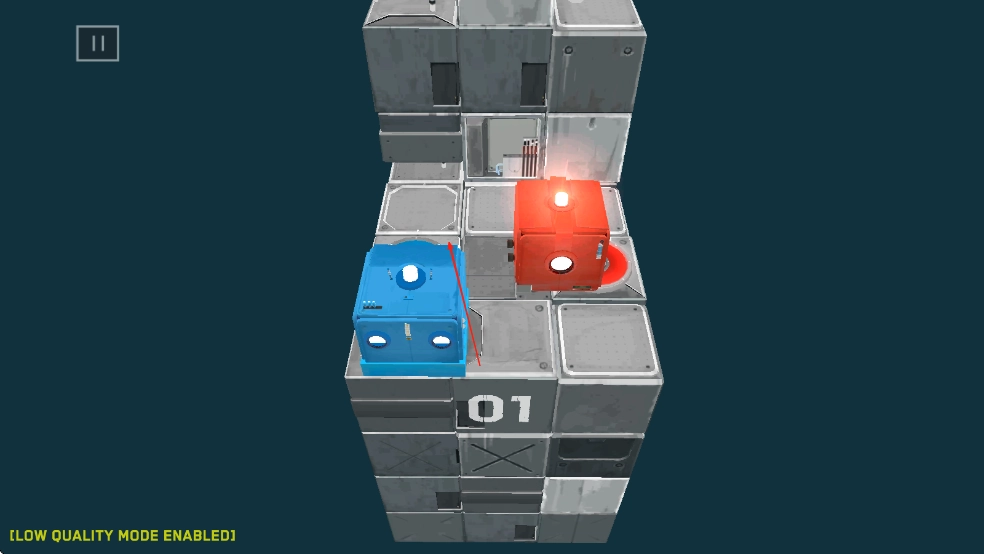 这是一款多层逻辑谜题游戏,关卡巧妙融合了“颜色对应”“压力触发”“镜像反射”等多种解谜元素。到了后期关卡,还会引入时间循环机制,玩家需要通过重复操作来解开时空悖论相关的谜题。