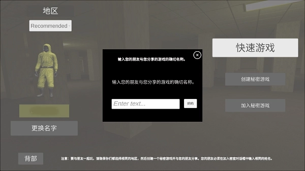 8、选择相同地图、地区后,输入相同的房间名称;