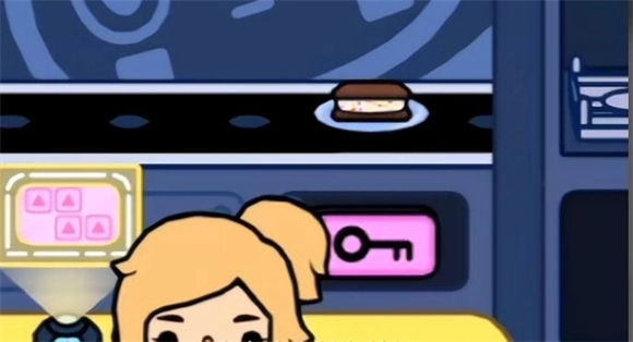 走到奶茶店后,先把两个盘子丢进垃圾桶,接着留意传送带上显示的密码,再在旁边的输入处敲入密码,点击后会出现一把粉色钥匙,这样就能进入新的区域了。