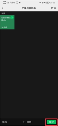 3、于微信里挑选你打算上传的文件,接着点击确定。待上传成功后,需回到刷刷题app里查看。