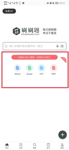 1. 打开刷刷题拍照搜题软件,在首页点击创建题库栏,点击后页面会跳转到微信,此时用户需先把自己的题库转发至微信。