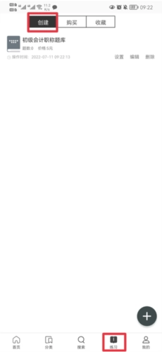 4、在练习页面点击“创建”,就能看到我们上传的文件,接着点击“开始练习”,便可进行答题。
