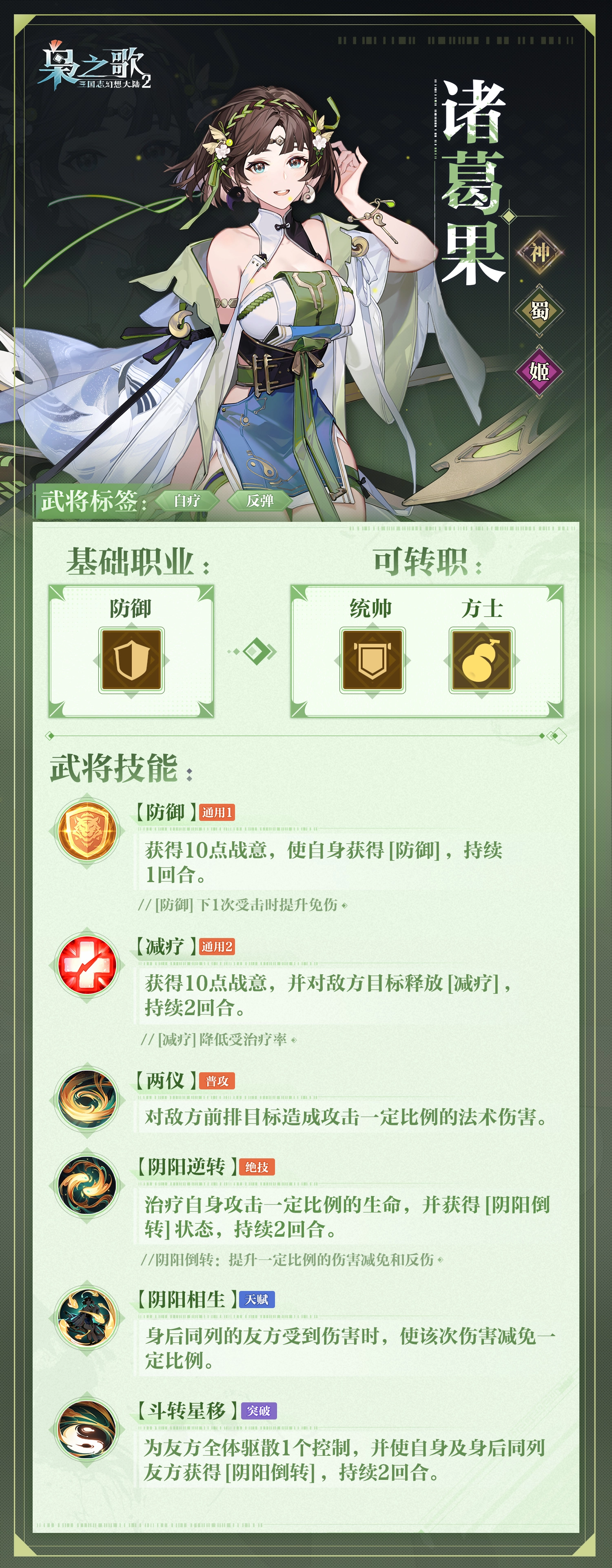 挣脱传统卡牌的桎梏,多维度转职、更随性的羁绊组合,任你尽情挥洒策略才华。接下来,小编就为大家带来详细的《三国志幻想大陆2:枭之歌》诸葛果角色介绍,希望这篇文章能对大家有所帮助,一起来瞧瞧吧!