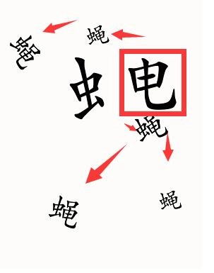 1、进入游戏之后,首先将最大苍蝇上面的“口”去除掉,使其变成一个“虫”字和一个“电”字,具体如图片所展示的那样。