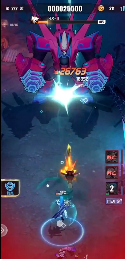 第一区域的敌人基本没办法伤到我。然而遭遇 BOSS 时,仅仅承受了前两轮攻势,就有两个英雄牺牲。幸亏最后剩下的云梦清定位是“坦克”,不然恐怕前两波攻势结束,所有英雄都得阵亡。