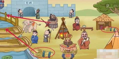 7、败走麦城:把稻草放置在“空”字之上,然后点击关羽。