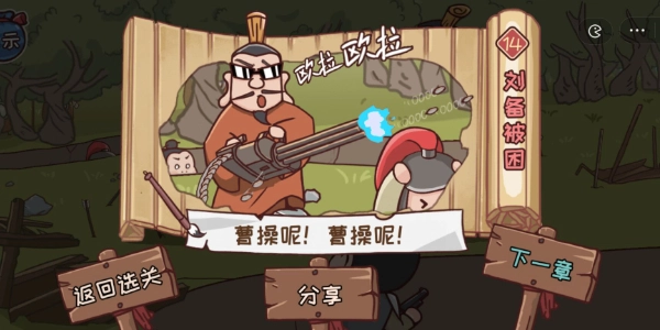 以上便是本篇攻略的全部内容啦,刘备想要脱困,办法就是让他获取加特林,借助热兵器科技的优势,将追杀他的人一举消灭。若想查看更多三国哈哈哈手游的攻略,欢迎关注HTML下载站哟!