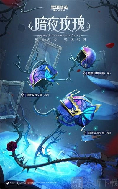 暗夜荣光皮肤系列整体运用黑暗风格设计,色调为蓝黑色。该系列皮肤海报一经发布,便收获众多玩家粉丝的喜爱。2022年1月14日,暗夜荣光皮肤正式上线,玩家能在游戏中抽取。此系列皮肤涵盖三款暗夜玫瑰服装、三级头、三级包、四把枪械以及SLR狙击枪的升级皮肤,另外还有降落伞与挂件。整套服装需通过抽取获取,保底价格大约在1300左右,如此便可拿下整个系列皮肤。不过这只是保底价格,实际花费也可能更高。请理智氪金!