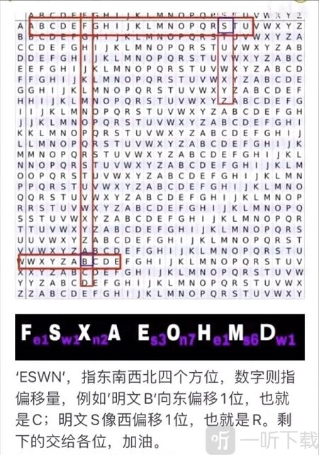 2. 这道题要求玩家依据游戏内线索,分析得出这个冷冻仓的密码,密码由9个英文字母组成。此解密过程涉及较多专业知识,需运用几种解密方法。这里简单提示一下,ESWN分别代表东南西北四个方位。