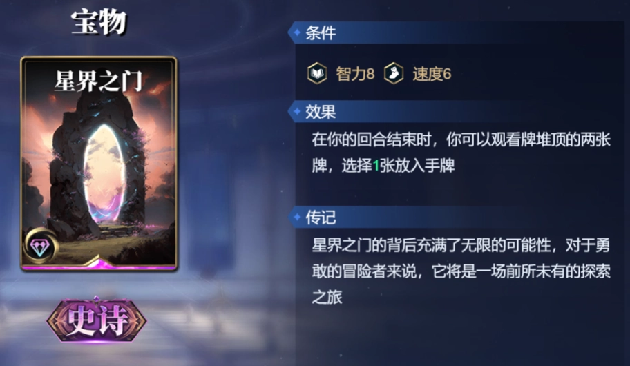 在属性堆高后,可以装备星界之门,变向提升手牌上限,同时观察对手会摸到什么公共牌。