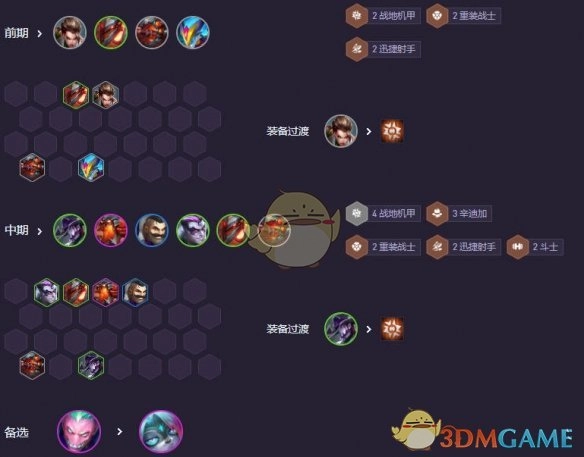 既能选择吃执事阵容,也能够搭配卡牌、诺手、布隆组成4战地阵容来冲击连胜。