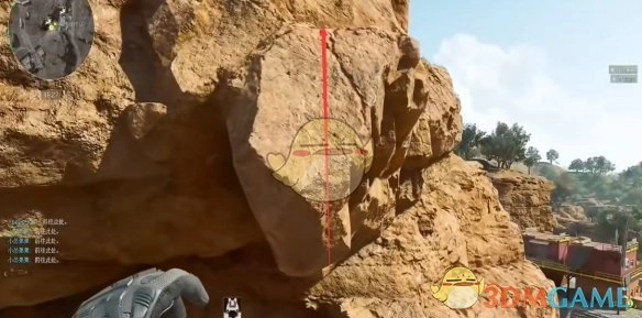5、到达此处后,视角接着向后转动,朝着对面的石头,需跳跃过去以触发攀爬动作。