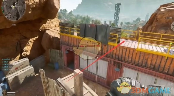 3、朝着图中所示位置跳跃,借助威龙的喷气功能,能够直接跳进去。