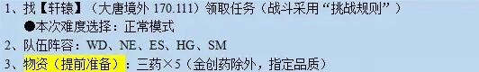 1、大唐境外(170.111)找【轩辕】领取任务(战斗采用“挑战规则”)